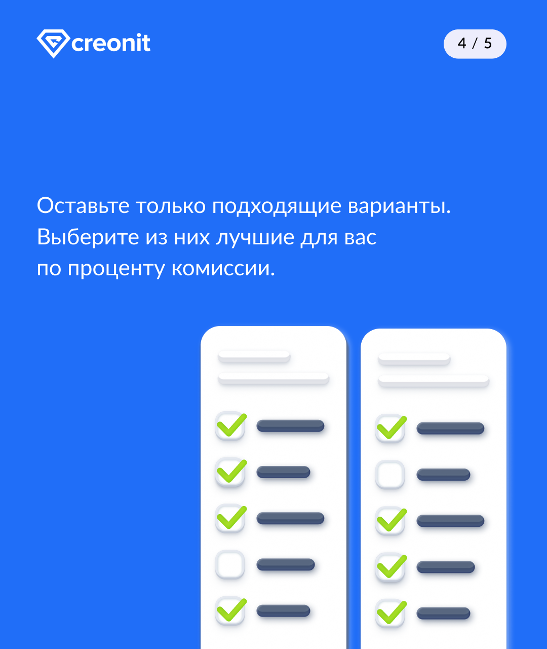 Оставьте только подходящие варианты. Выберите из них лучшие для вас по проценту комиссии.