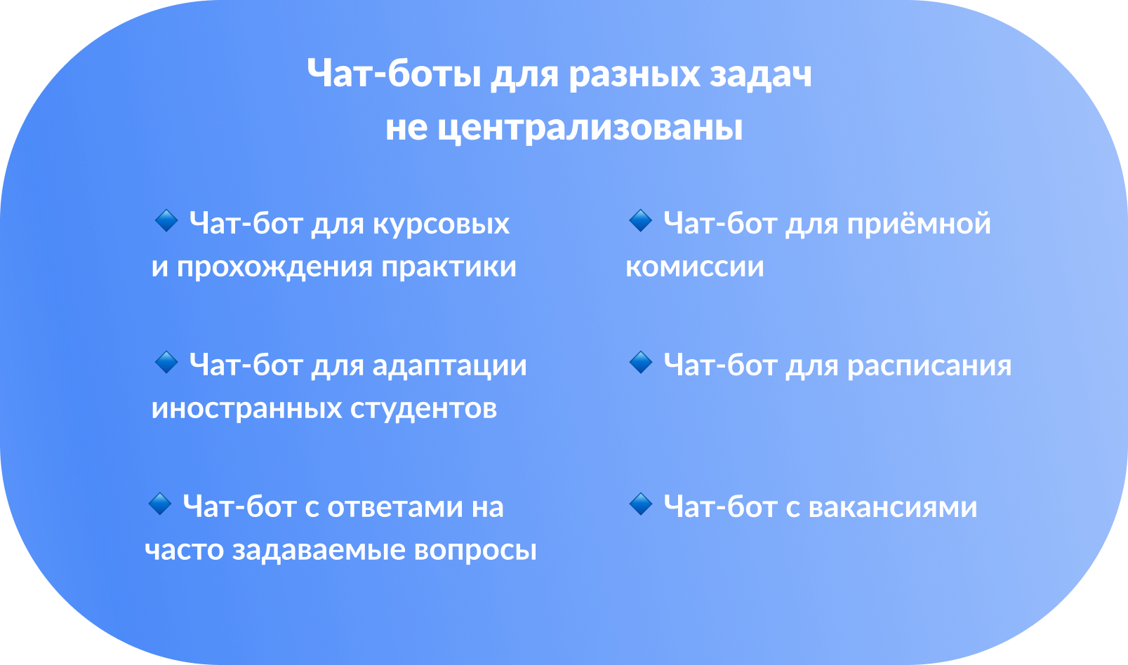 Не требуется дополнительно расписывать проблему — бот понимает студента по ключевым словам