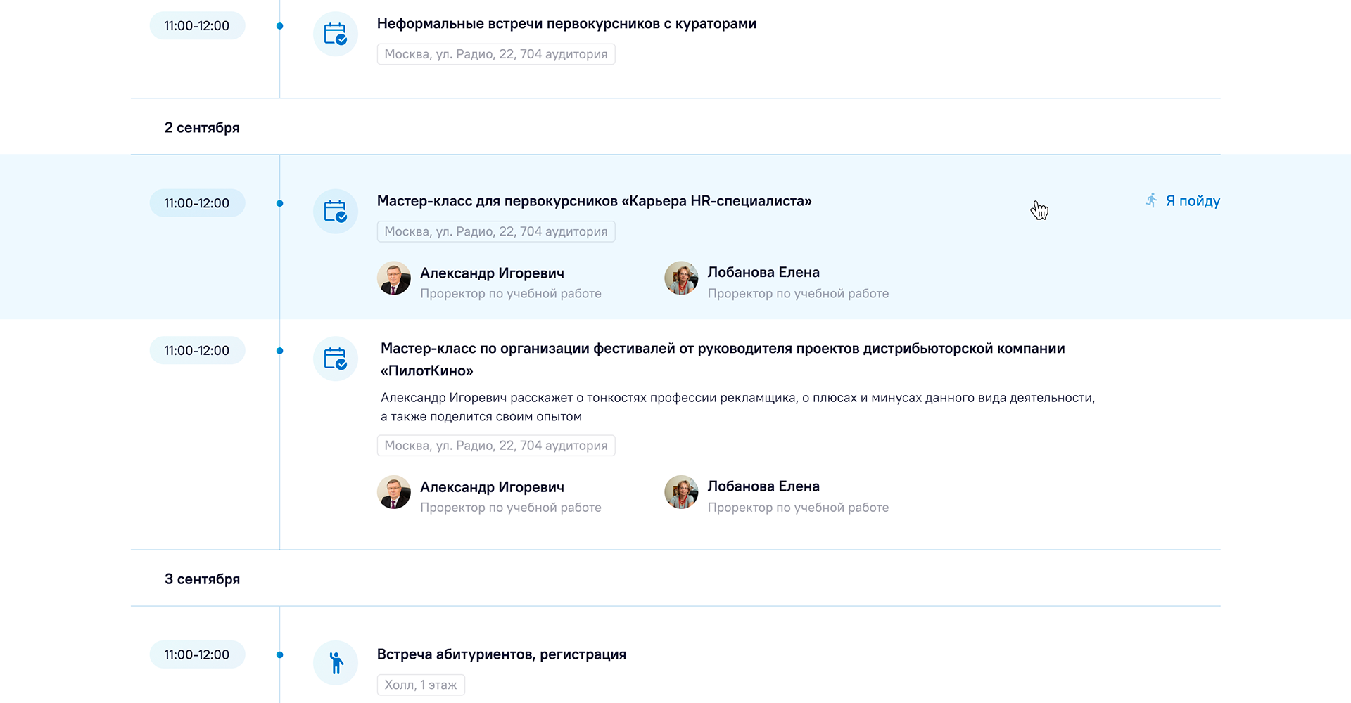 Автоматическое обновление части информации. Мы интегрировали сайт РосНОУ с несколькими сервисами и подтянули внутренние информационные системы. Теперь часть данных обновляется автоматически. Например, расписание для студентов всегда остаётся актуальным без участия людей.