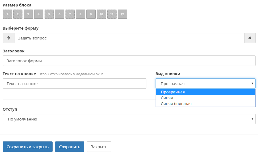 Виджеты можно настраивать под разные размеры: 30%, 50%, 70%, 100%.