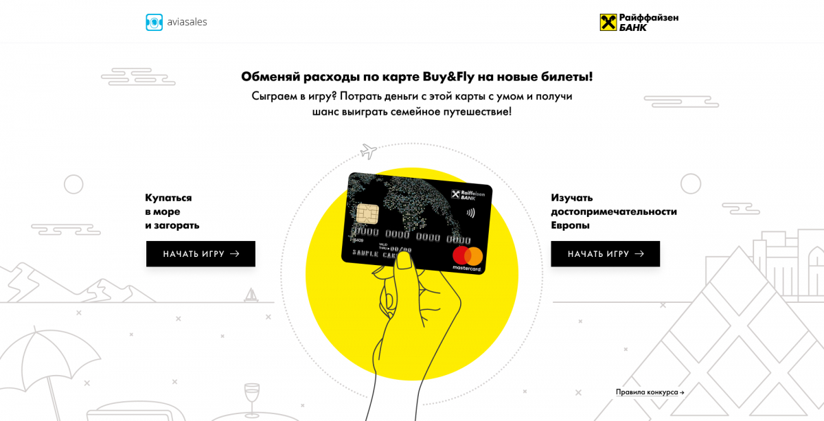 Цель спецпроекта — продвижение дебетовой карты Buy&Fly — продукта «Райффайзен Банка», с помощью которого можно копить мили и путешествовать бесплатно.