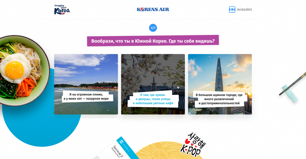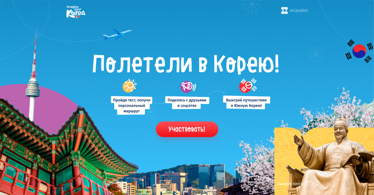 Тест, с помощью которого пользователи могут разработать персональный маршрут по Южной Корее и выиграть путешествие в эту страну.