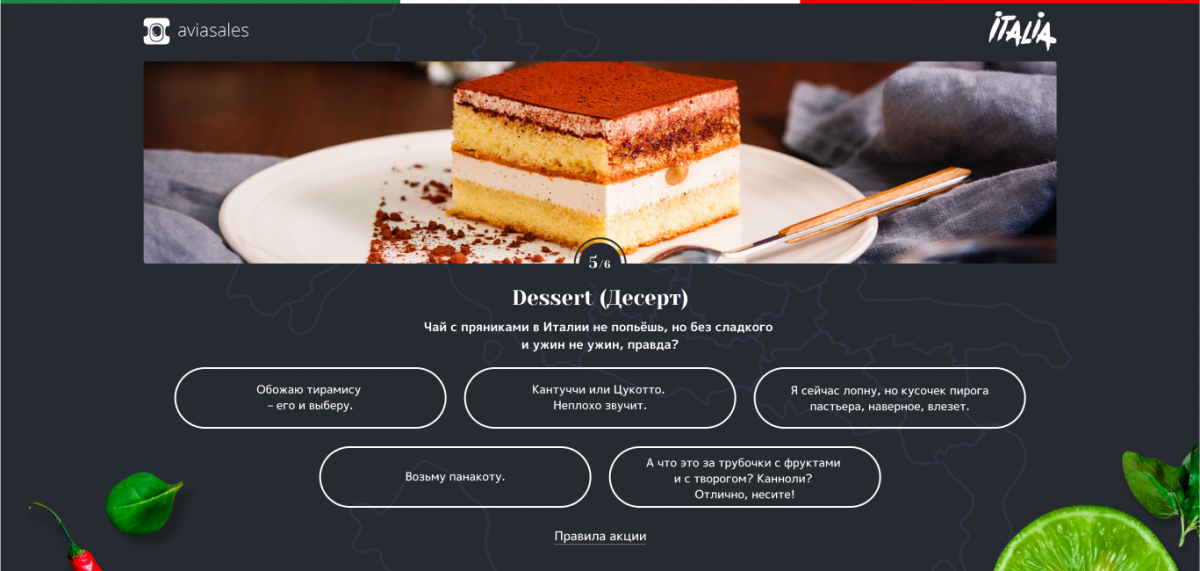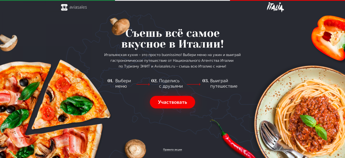 Промо-сайт, на котором пользователи составляют меню на ужин и участвуют в розыгрыше гастрономического путешествия.
