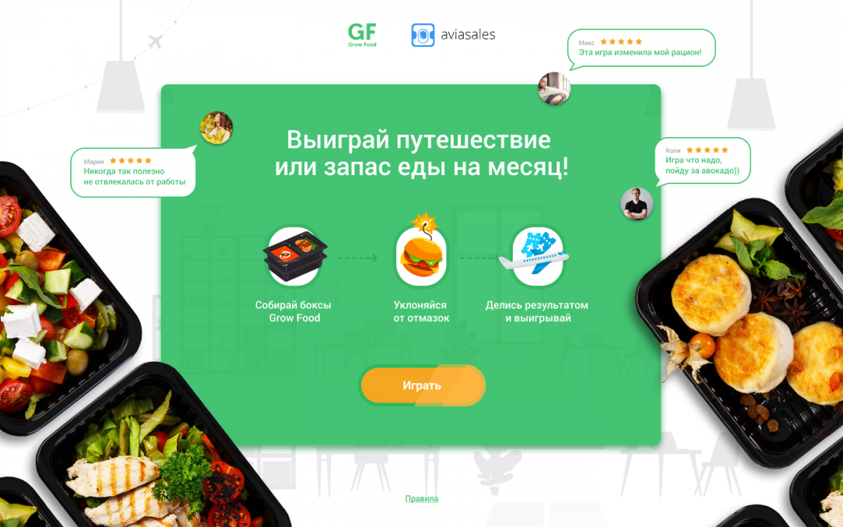 Промо-игра для сервиса по доставке здоровой еды Grow Food совместно с «Авиасейлс».