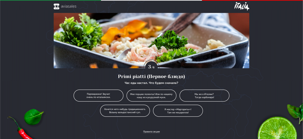 На основе выбранных вариантов система указывает регион Италии, в который нужно отправиться, чтобы попробовать любимые блюда: