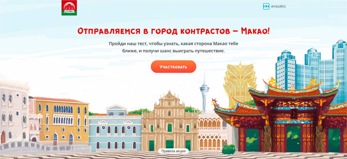 Спецпроект с продвижением розыгрыша путешествия в Макао.