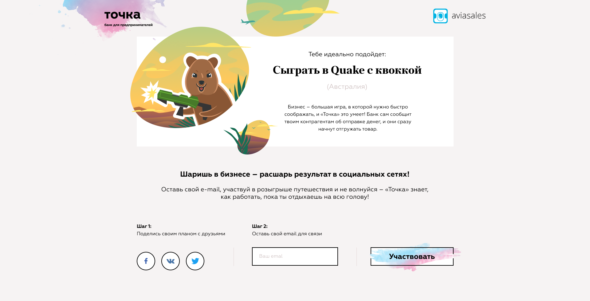 За 2 года сотрудничества мы создали для «Ависейлс» много промо-сайтов с квизами, тестами и розыгрышами. Цель каждого спецпроекта — добиться шеров в соцсетях.