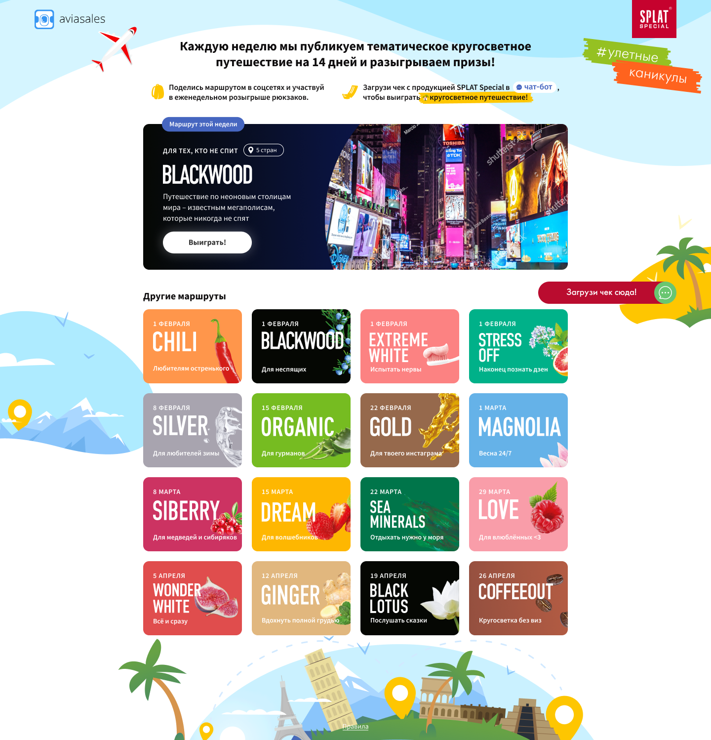Спецпроект, в котором каждую неделю появляется тематическое кругосветное путешествие на 14 дней.