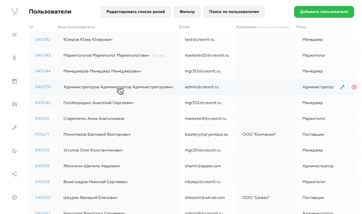 Управление пользователями внутри системы. Например, настройка разных права доступа для владельца компании, менеджеров по продажам и поставщиков.
