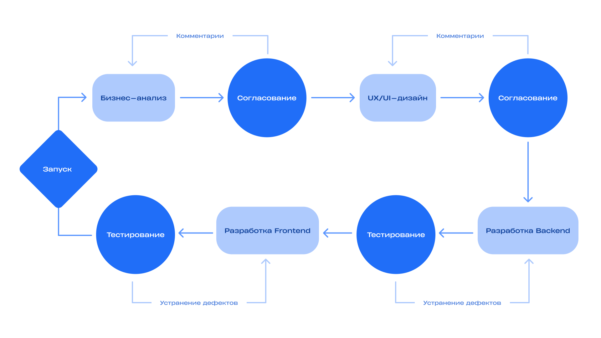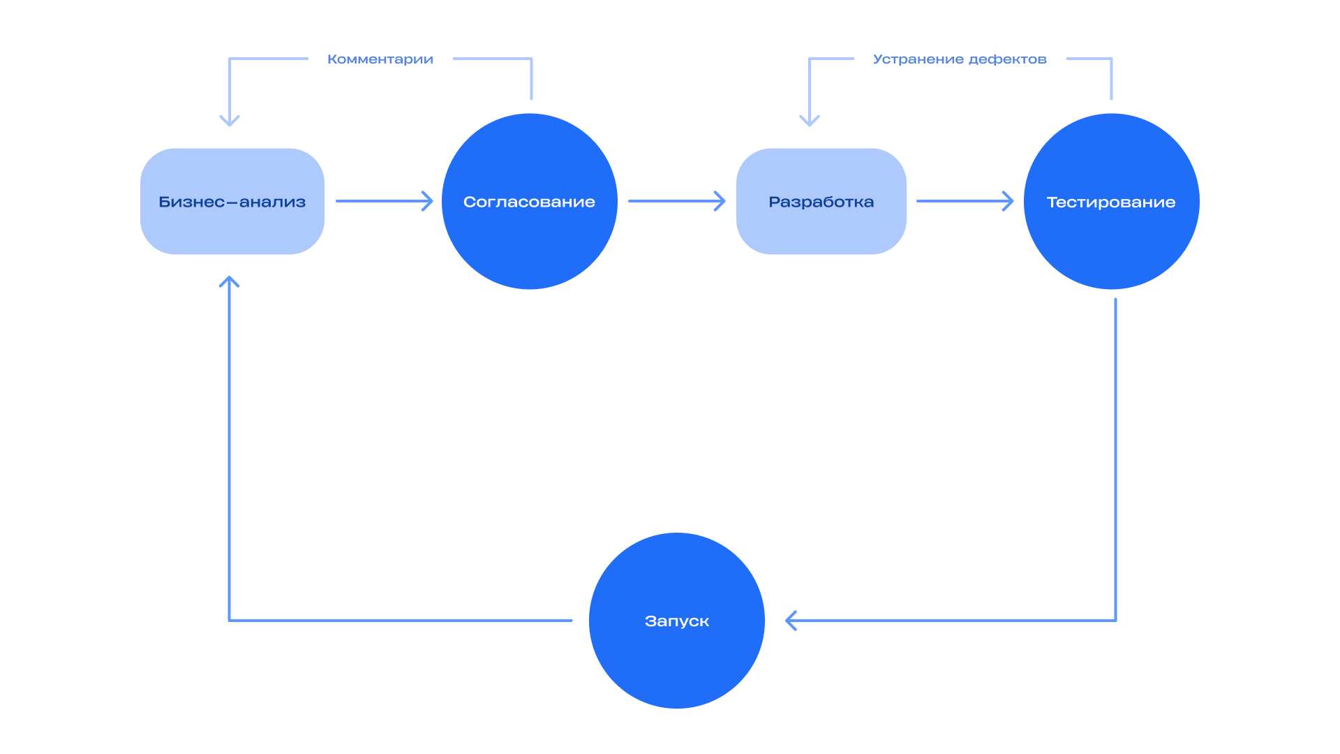 Долгая разработка из-за длинных цепочек согласований во время производства. Работа над продуктом с нуля включает в себя этапы: бизнес-аналитика, проектирование, дизайн, frontend-разработка, backend-разработка, тестирование и отладка, запуск. После каждого шага заказчик даёт обратную связь, а подрядчик вносит изменения. Это растягивает разработку продукта (в том числе MVP или пилота) до 6 месяцев и больше.
