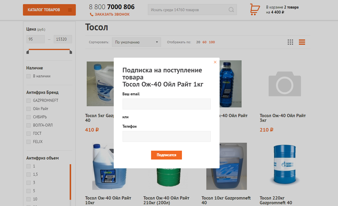 Еще, чтобы товары назывались по-человечески — вместо «а/фр. красн. 5К д.энер.», например — мы сделали генерацию названия по параметрам. Когда представитель заказчика забивает товары в базу, он может назвать их как угодно, но указать параметры (тип, цвет, объем, бренд) — и в итоге получится «Антифриз красный 5 кг G-energy». Это важно для SEO и Яндекс.Маркета.