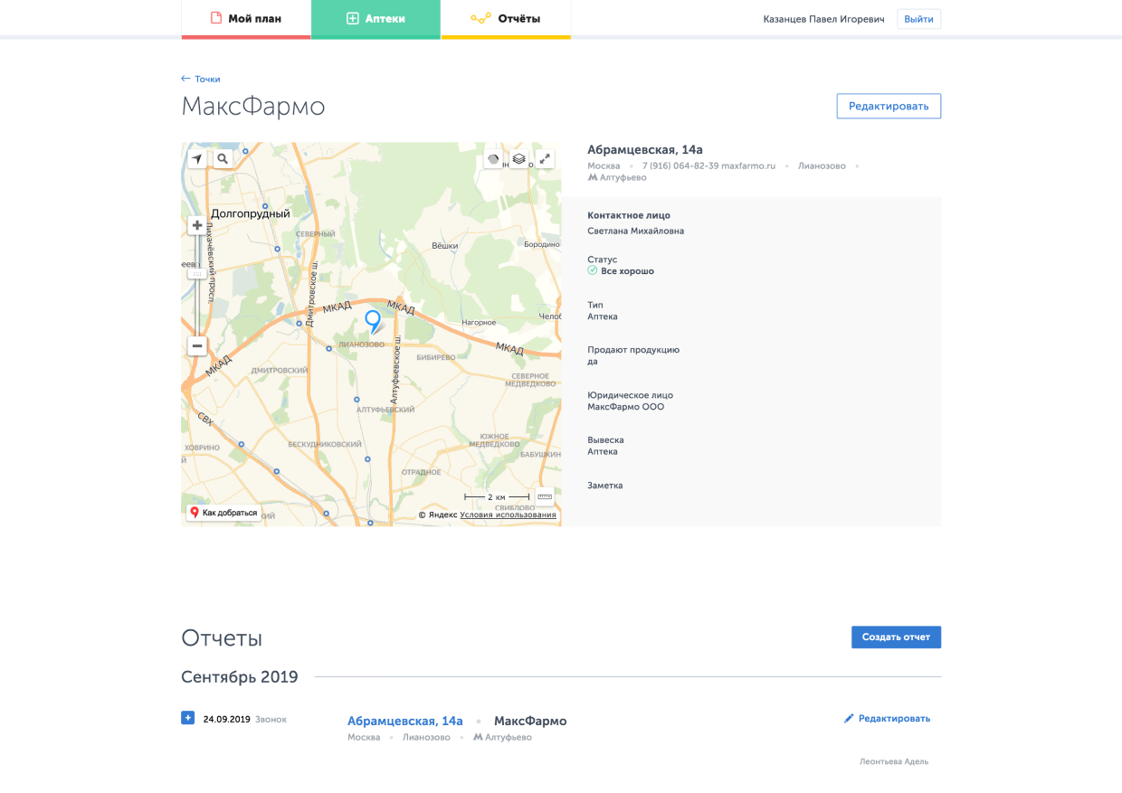 Разработали внутренний сервис для работы торговых представителей компании. Создание и поддержка актуальной базы клиентов, планирование и отчетность. Подробнее — читайте ниже.