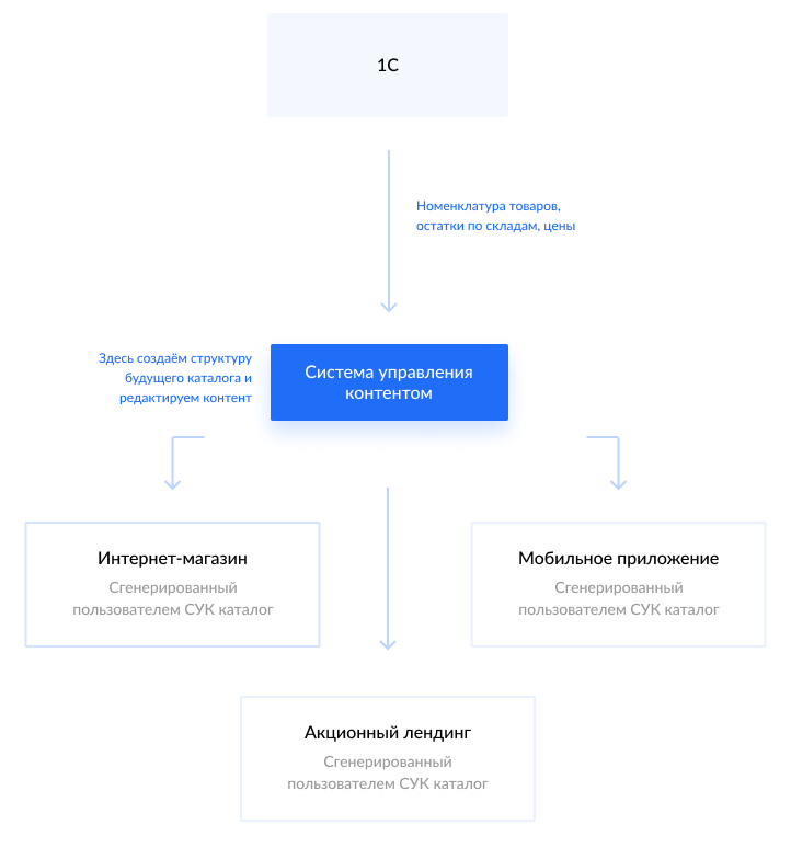 Разработали PIM-систему для интернет-магазинов, которая помогает управлять товарами и формировать каталоги для разных магазинов из одной 1С.