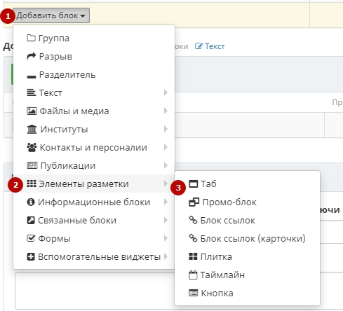 Страницы полностью состоят из виджетов, чтобы у клиента всегда была возможность менять местами блоки, добавлять новые, менять их наполнение, тип и порядок. Например, в разделе кафедр не нужно задавать контент отдельно для каждой карточки: информация подтянется самостоятельно, а в виджете достаточно выбрать нужный институт. Новости для этих страниц подтягиваются по тегу, который настраивается в админке.