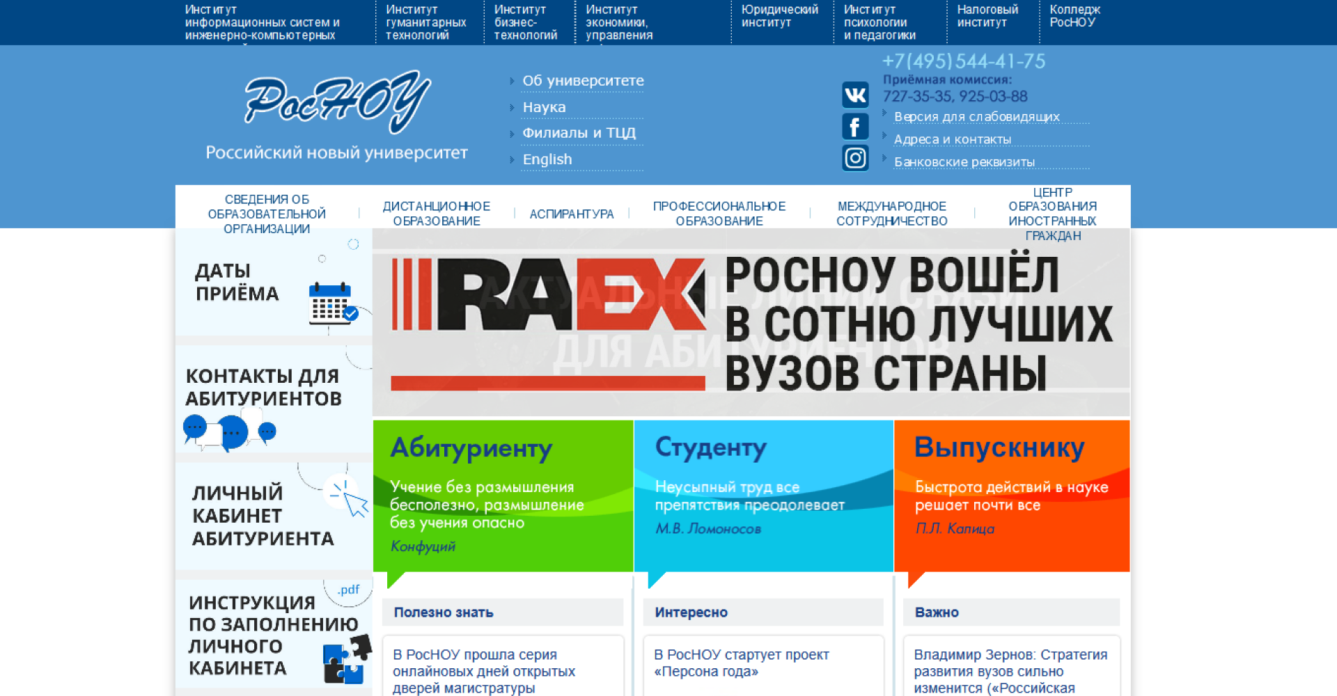 Если вы попадёте на страницу 404, то увидите маскота РосНОУ — енотика, у которого даже есть своя страничка в VK.