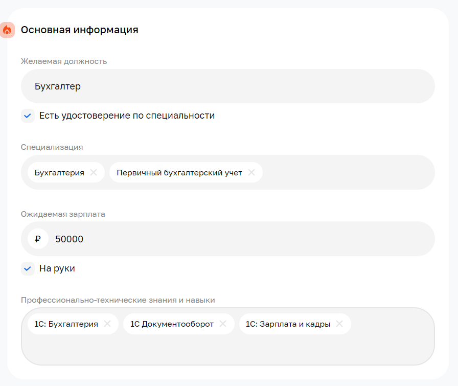 Это значит, что стоит отображать ключевые навыки в карточке резюме или выделять их цветом в общем тексте.