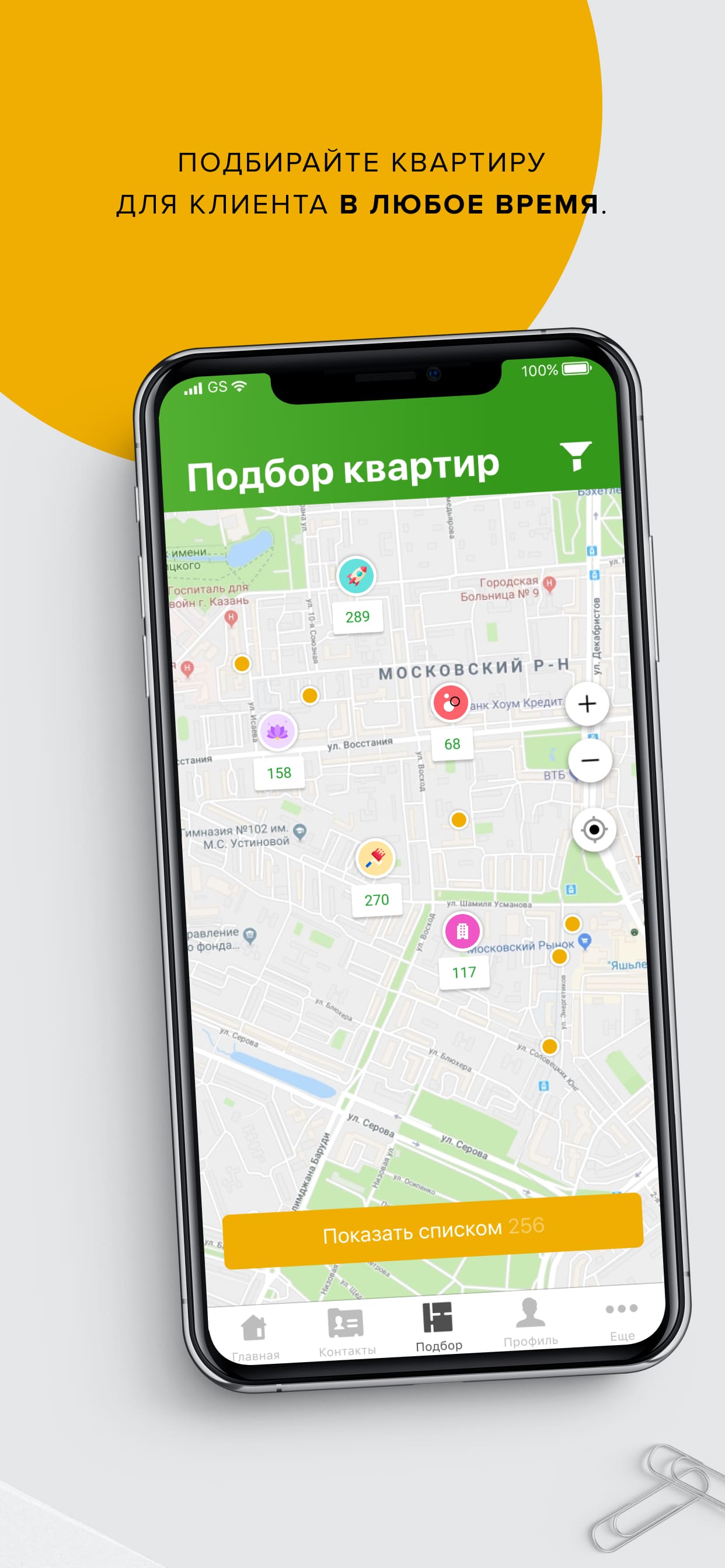 Когда риелтор находит подходящую квартиру, он в один клик отправляет своему клиенту информацию о ней в ватсап, телеграм или вайбер. Это удобно и здорово экономит время.