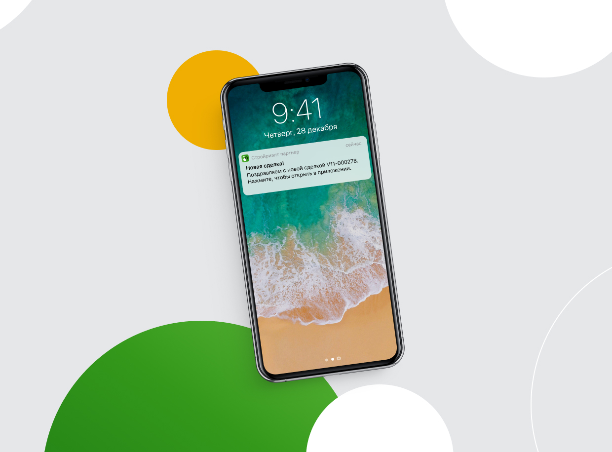 Дальше судьба заявки переходит в ведение менеджера по продажам «Стройриэлт». Когда изменяется ее статус в CRM, приложение получает обновление статуса и риелтор видит, на каком этапе находится его заявка.