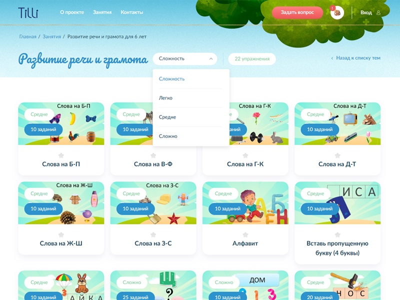 Тилли — это обучающий сервис с интерактивными тестами, который помогает детям 2 — 10 лет развиваться и узнавать что-то новое.