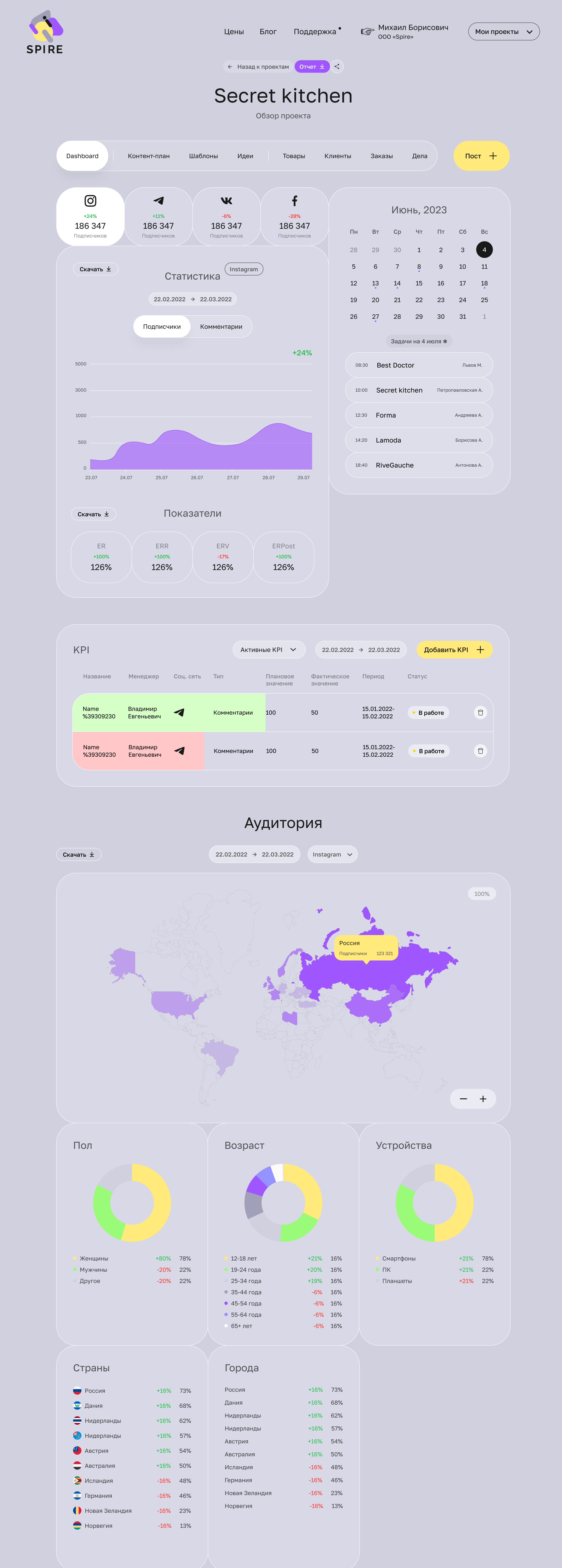 Теперь в личном кабинете отображается целевая аудитория для конкретного юзера в Spire на основании всех его соцсетей.