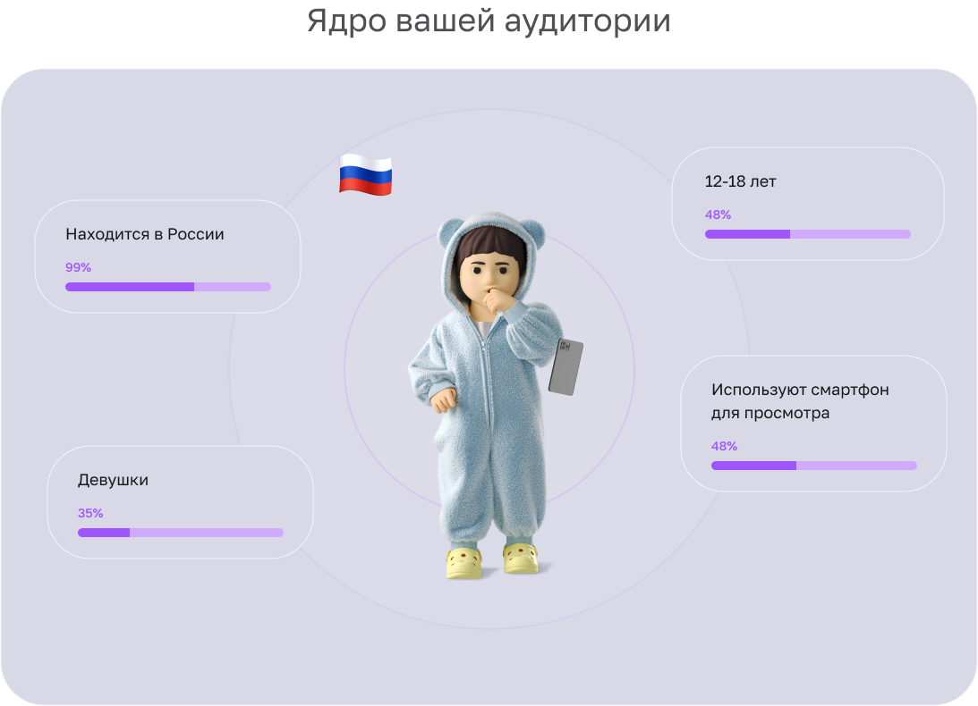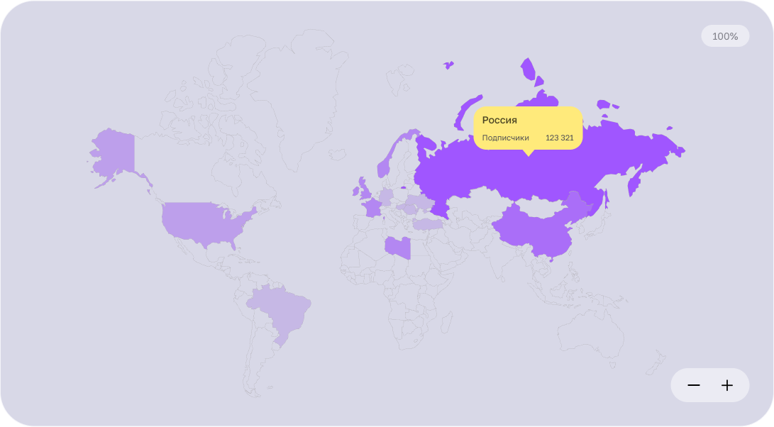 Добавили блок с информацией об аудитории. Он включает в себя карту с информацией о просмотрах: сколько их из каких стран.