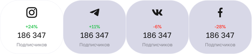 Увеличили кнопки соцсетей на Дашборде. Теперь на них выводится информация по количеству подписчиков в каждой соцсети и прирост подписчиков, в зависимости от выбранного интервала на статистике.