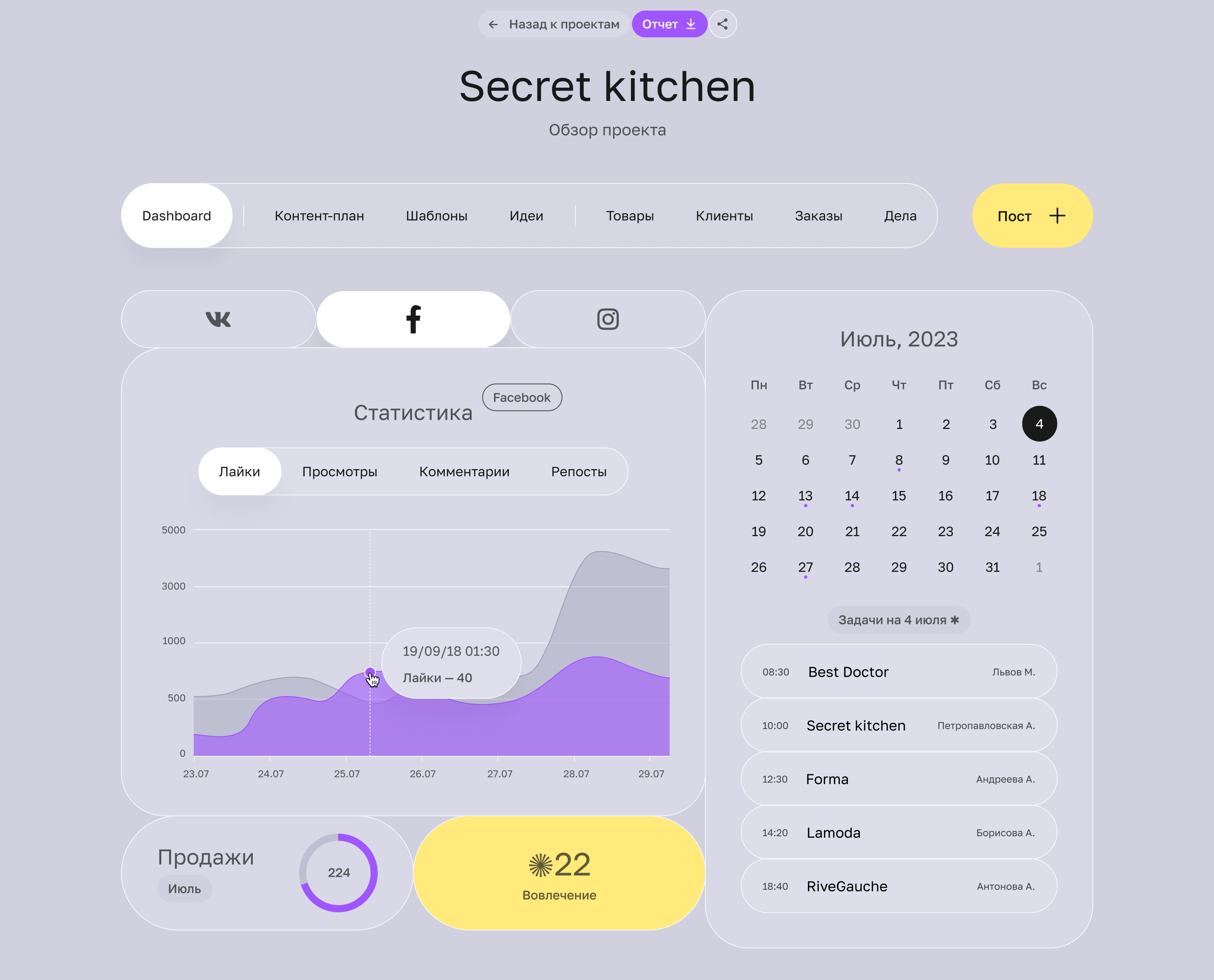 Доработали Дашборд сервиса для автоматизации работы с бизнес-аккаунтами в социальных сетях