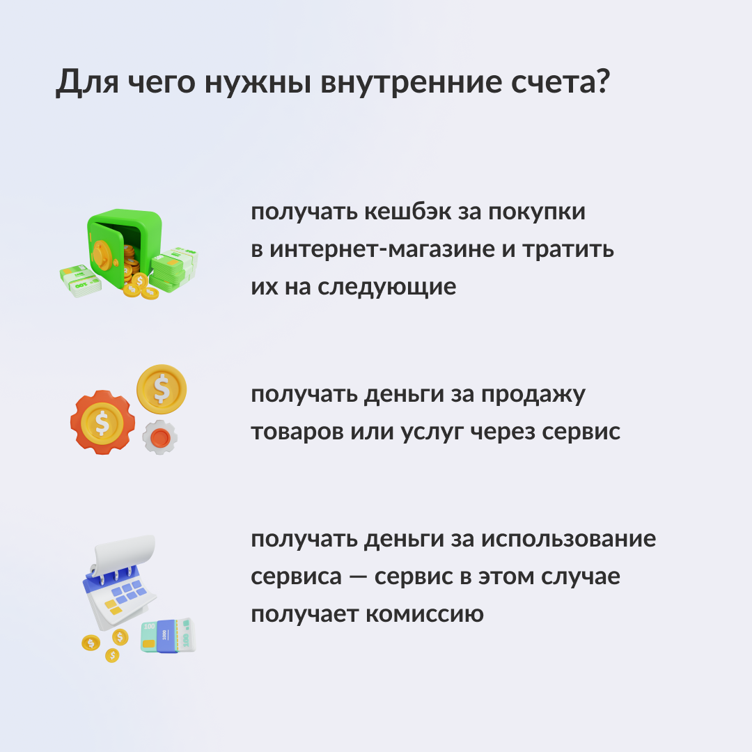 Заказчики часто приходят к нам с проектами, для которых нужно реализовать внутренние счета. Чаще всего они нужны для того, чтобы: